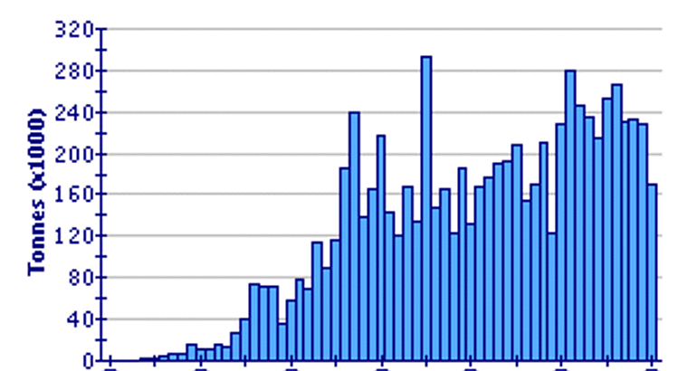 Base de datos sobre el volumen de la pesca, desglosados por país o por zona, por especie, por las principales zonas pesqueras de la FAO, y por año, correspondientes a la pesca comercial, industrial, recreativa y de subsistencia. También contiene la captura de: maricultura, acuicultura y otros tipos de piscicultura.